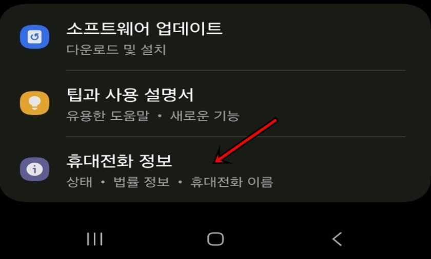 설정메뉴 최 하단의 "휴대전화 정보"메뉴를 클릭해서 들어가 주세요.