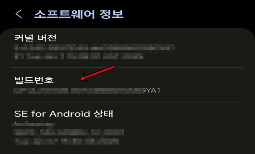 소프트웨어 정보에서 빌드번호항목이 보이실 텐데, 이 부분을 천천히 7번을 터치를 해주세요.