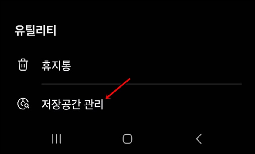 추가로 휴지통에 사용하지 않은 파일들이 있는 경우가 있어요. 처음과 마찬가지로 저장공간 관리 메뉴로 들어가신 뒤 "휴지통"을 클릭해 주세요.