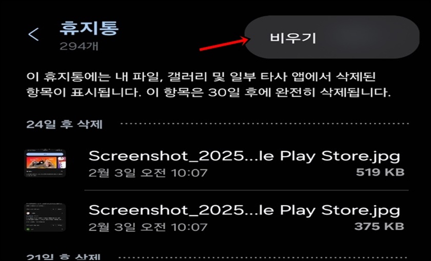 2. 갤럭시 휴지통 정리
