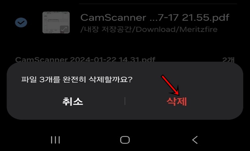파일을 완전히 삭제할까요?라고 메시지가 나오면 "삭제"버튼을 클릭해 주세요.