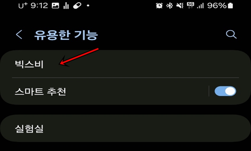 유용한 기능에서 "빅스비"메뉴를 클릭해 주세요.