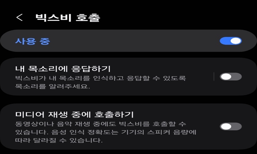 빅스비 호출을 사용 중으로 변경하시면 빅스비를 통해서 해당 앱을 실행할 수 있어요.