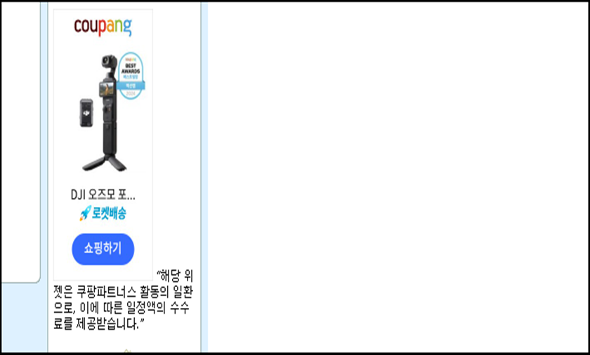 먼저 다른 사람들의 네이버 블로그를 보시면 위 사진처럼 "쿠팡 광고"를 많이들 보셨을거에요. 우리도 여기에 쿠팡 광고 배너를 달아보도록 해요.