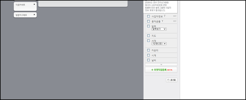 레이아웃 위젯설정으로 오시면 사진과 같이 "위젯직접등록"버튼이 있을 텐데, 클릭해 주세요.