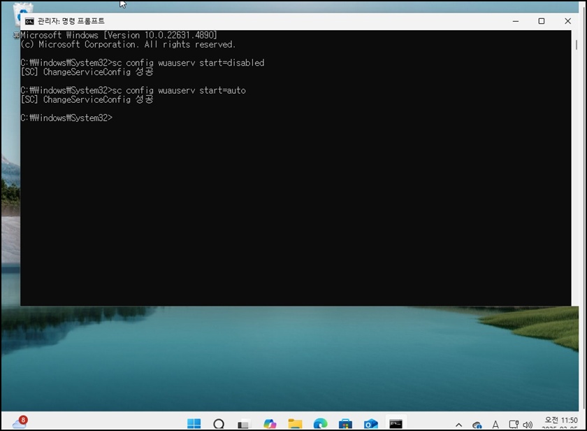 4. 명령프롬프트로 윈도우11 자동업데이트 끄기
