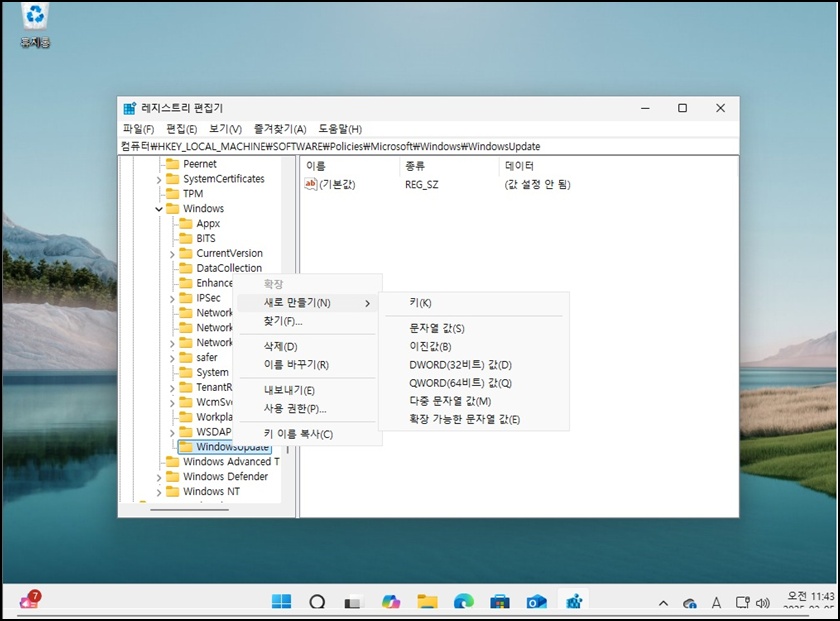 1. 레지스트리 편집기를 이용한 윈도 11 자동업데이트 끄기