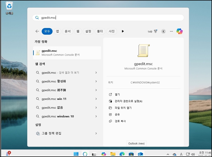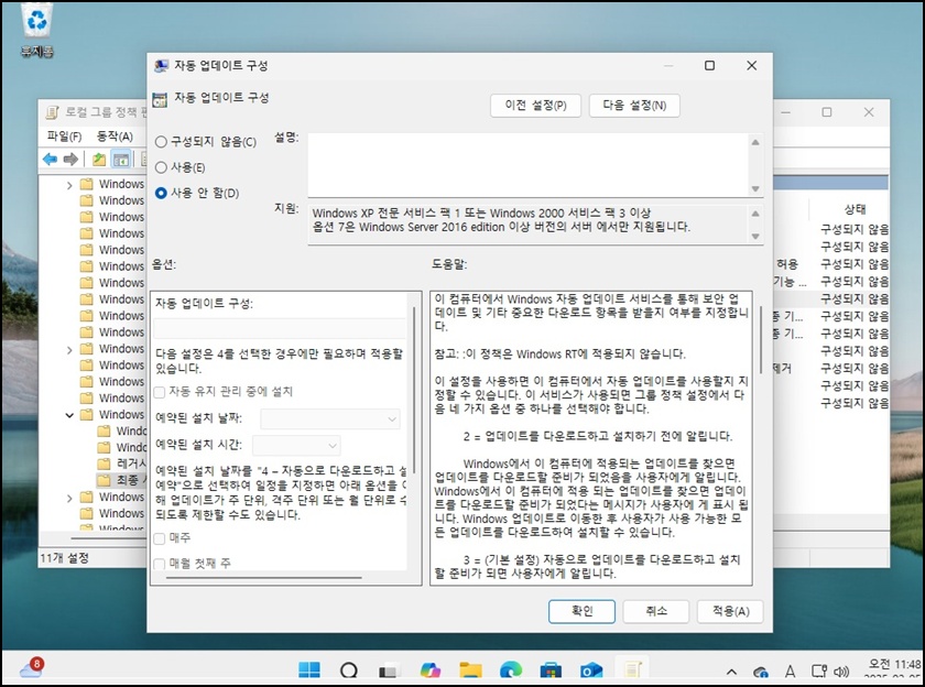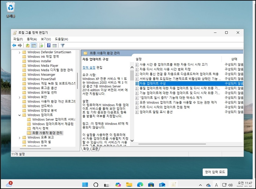 2. gpedit.msc(그룹 정책기)를 활용하여 윈도우11 자동업데이트 끄기