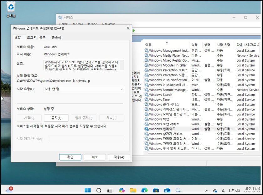 3. 서비스를 활용하여 윈도 11 자동업데이트 끄기