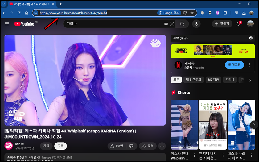 먼저 여러분이 소장하고 싶은 유튜브 동영상을 실행 후 상단의 URL을 복사해 주세요.