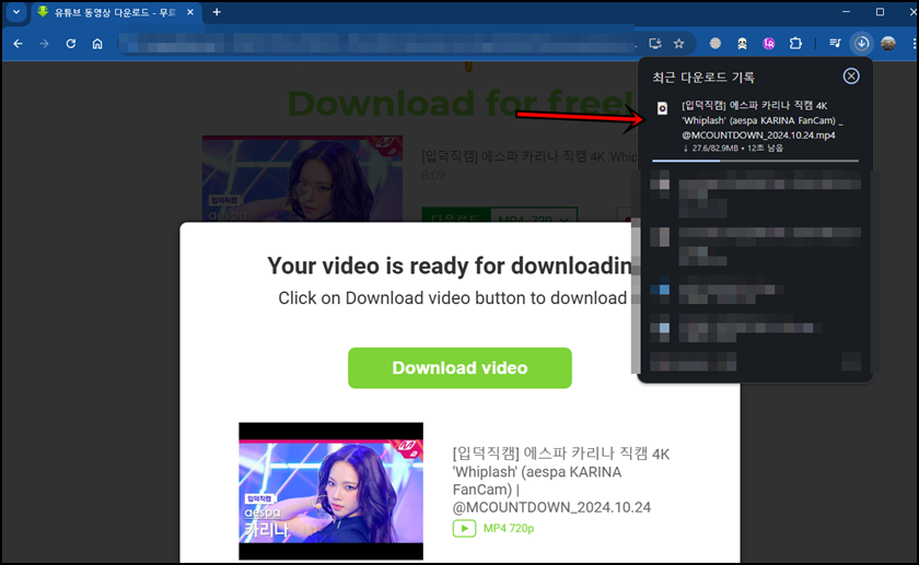 위 사진처럼 유튜브 동영상이 다운로드될 거예요.