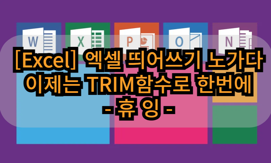 안녕하세요 오늘도 휴잉의 블로그를 찾아주신 여러분 감사드려요. 오늘 제가 포스팅할 내용은 "엑셀 띄어쓰기 막일 이제는 TRIM함수로 한 번에"라는 주제에 대해 포스팅해보려고 해요. 엑셀로 문서 작업을 하다 보면 다른 곳에서 복사해 온 파일의 단어들의 띄어쓰기가 중구난방일 때가 있어요. 그럴 때 대부분 삭제버튼을 통해 띄어쓰기가 된 곳을 지우는 막일 작업을 하실 텐데, 이게 생각보다 귀찮고 오래 걸리는 작업이에요. 하지만 그럴 필요 없이 이제 TRIM함수 하나면 이런 노가다자 작업필요 없이 단 5초 만에 끝낼 수 있는데 어떻게 하는지 오늘 여러분들께 설명드려볼게요.