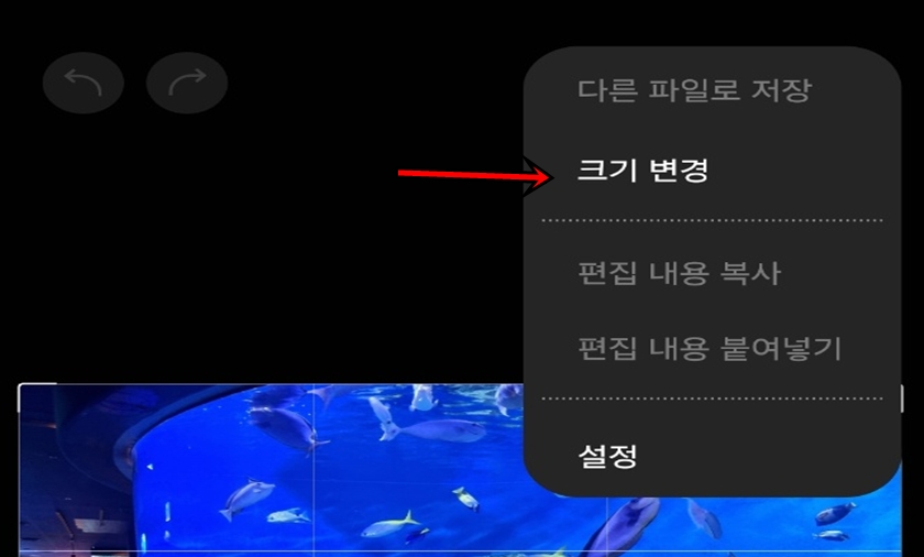 메뉴를 보시면 위 사진처럼 "크기 변경"을 클릭해 주세요.