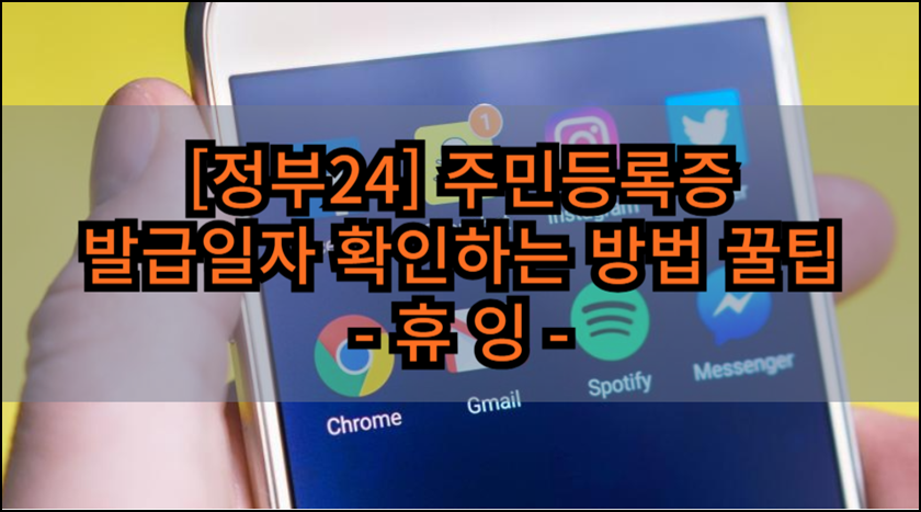 안녕하세요 오늘도 휴잉의 블로그를 찾아주신 여러분 감사드려요. 오늘 제가 포스팅할 내용은 "주민등록증 발급일자 확인하는 방법"에 대해 포스팅해보려고 해요. 지난 시간에 정부 24 모바일 신분증 발급하는 방법에 대해 소개해드렸는데, 모바일 신분증을 발급하려면 실물 신분증의 발급일자 확인이 필요해요. 실물 신분증을 소지하는 분들이라면 간단히 발급일자를 확인하여 모바일신분증을 등록할 수 있는데, 만약 실물신분증을 소지하지 않거나 분신하신 분들이라면 나의 주민등록증 발급일자를 확인하기 어려우실 거예요. 그래서 간단히 정부 24를 통해 나의 주민등록증 발급일자를 확인하는 방법을 여러분들께 소개해드릴게요.