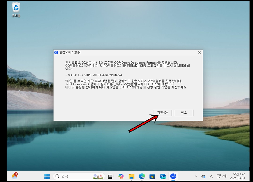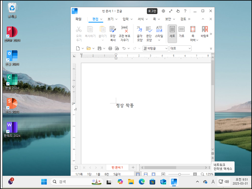 PC 재부팅 후 정상적으로 한컴오피스 프로그램이 작동되는 걸 확인할 수 있어요. 참 쉽죠?