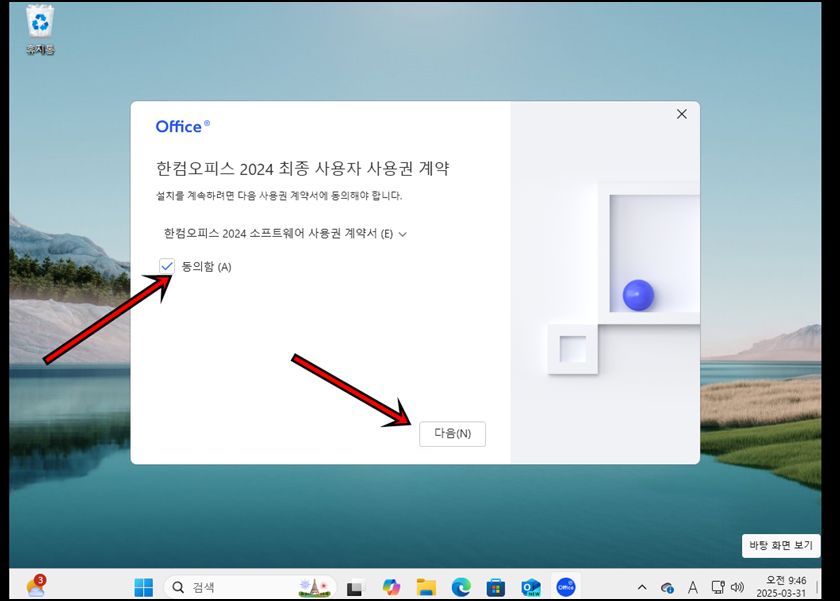 한컴오피스 2024 클릭 한번에 다운로드 및 정품인증까지
