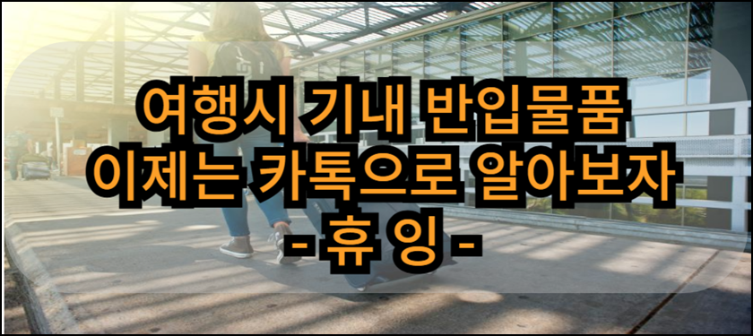 안녕하세요 오늘도 휴잉의 블로그를 찾아주신 여러분 감사드려요. 오늘 제가 포스팅할 내용은 "여행 시 기내 반입물품 이제는 카톡으로 알아보는 방법"에 대해 포스팅해보려고 해요. 앞으로 5월의 노동절을 포함해서, 어린이날, 대체휴일등 징검다리 연휴를 맞이하여 항공사를 이용한 여행객들이 많이 늘어날 것으로 보는데요. 대중교통만큼은 아니지만 비행기를 탈 때마다 내가 가지고 있는 물품이 기내반입물품인지 아닌지 헷갈릴 때가 많이 있는 것 같아요. 그럴 때 아주 간편하게 카카오톡을 통해서 기내반입물품을 알아보는 방법이 있는데, 오늘 그 여행 꿀팁을 여러분들께 소개해드릴게요.