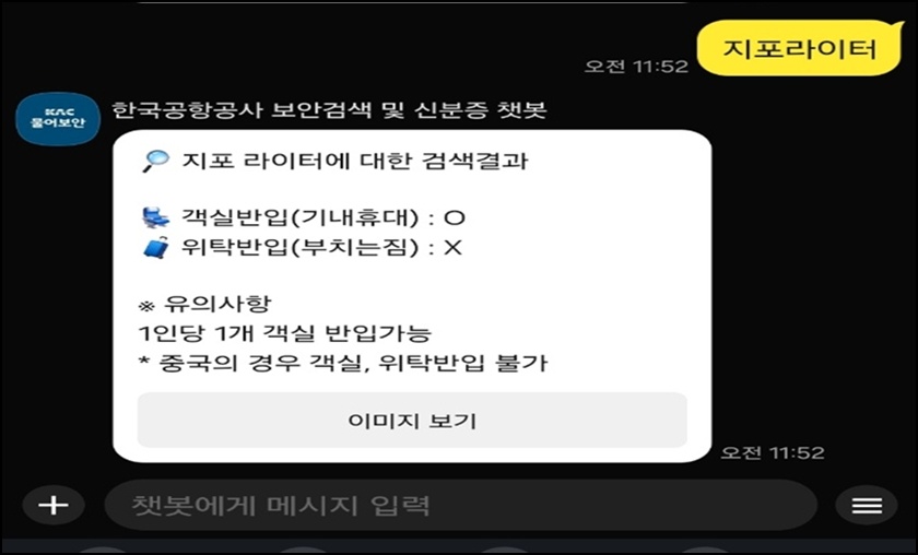여행시 기내 반입물품 이제는 카톡으로 알아보자
