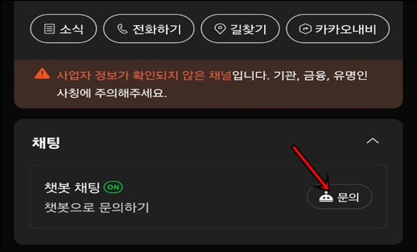 이제 "챗봇 채팅"의 문의를 클릭해 주세요.