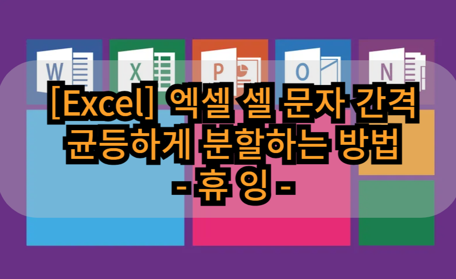안녕하세요 오늘도 휴잉의 블로그를 찾아주신 여러분 감사드려요. 오늘 제가 포스팅할 내용은 "엑셀 셀 문자 간격 균등하게 분할하는 방법"에 대해 포스팅해보려고 해요. 엑셀 프로그램 이용하여 문서를 작성하다 보면 엑셀 셀 안에 텍스트를 균등하게 분할해야 하는 경우가 있어요. 아직 엑셀사용이 익숙하지 않은 분들은 스페이스바를 이용하여 글자간격을 조절하실 것 같은데, 그럴 필요 없이 클릭 몇 번만으로 셀 안에 텍스트를 균등하게 분할하는 방법을 설명드려볼게요.