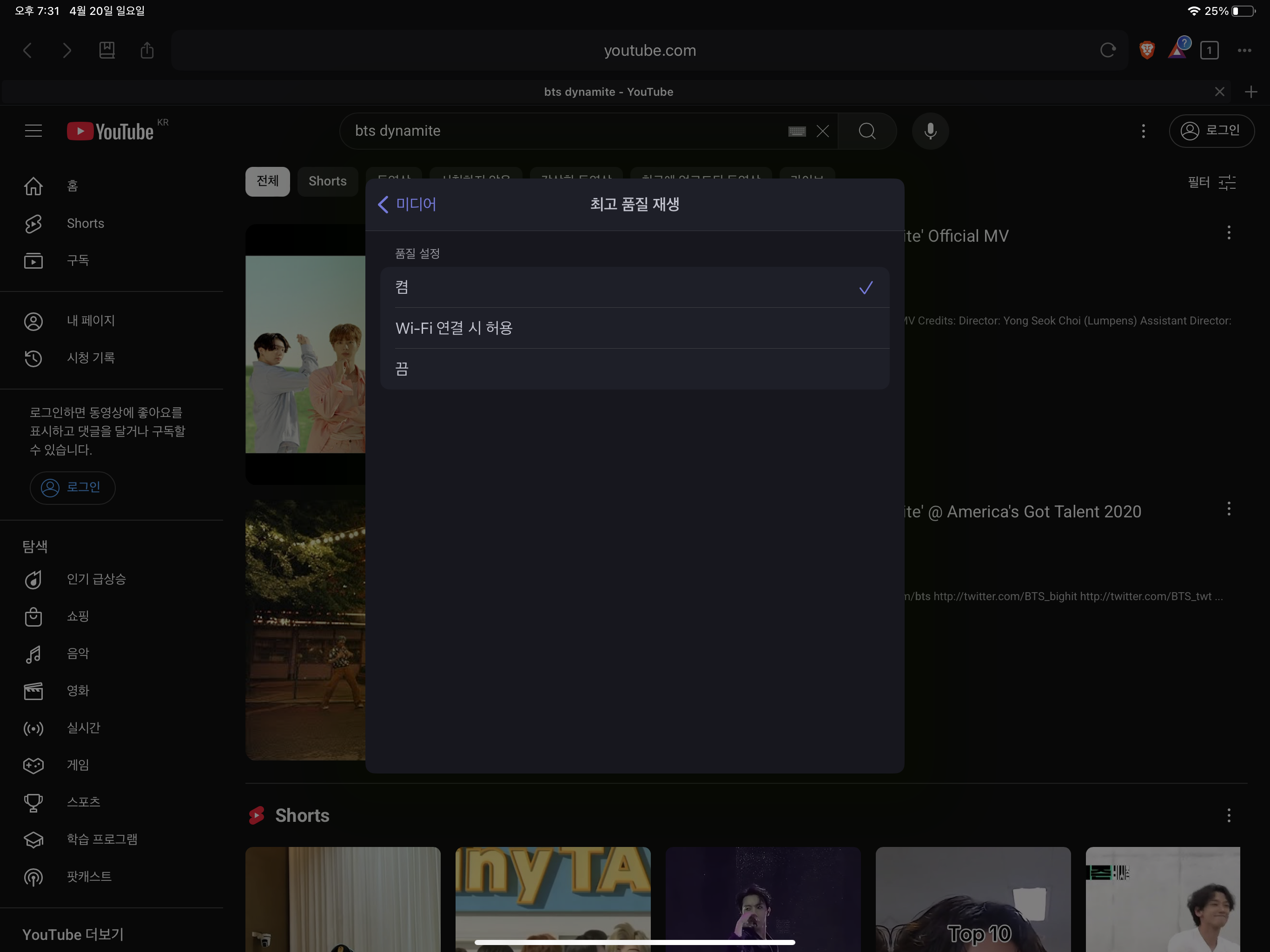 마지막으로 최고 품질 재생을 "켬"으로 설정하신 뒤 아이폰이나 아이패드 화면을 꺼보시면 백그라운드로 재생되는 걸 확인하실 수 있어요. 테스트 시간은 2025.4.20일 기준으로 작성되었으니 참고해 주세요^^.