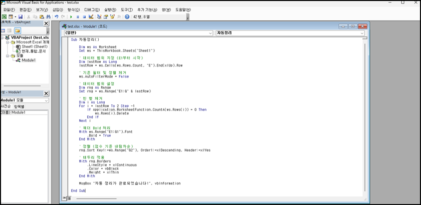 MsgBox "자동 정리가 완료되었습니다!", vbInformation