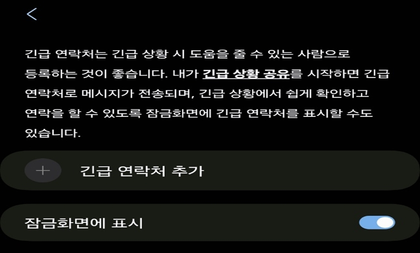 또한 "긴급 상황 공유 설정"도 기능이 있는데요.