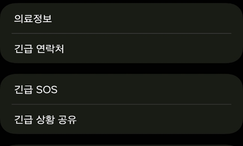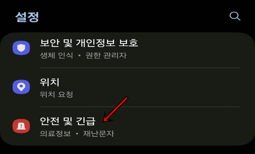 설정 메뉴에서 "안전 및 긴급"메뉴를 찾아서 들어가 주세요.