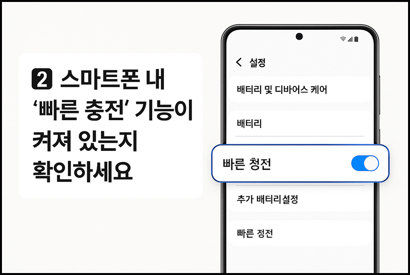 2. 스마트폰 내 '빠른 충전'기능이 켜져 있는지 확인해 주세요.