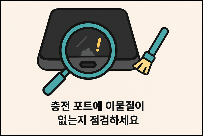 3. 충전 포트에 이물질이 없는지 점검하세요.