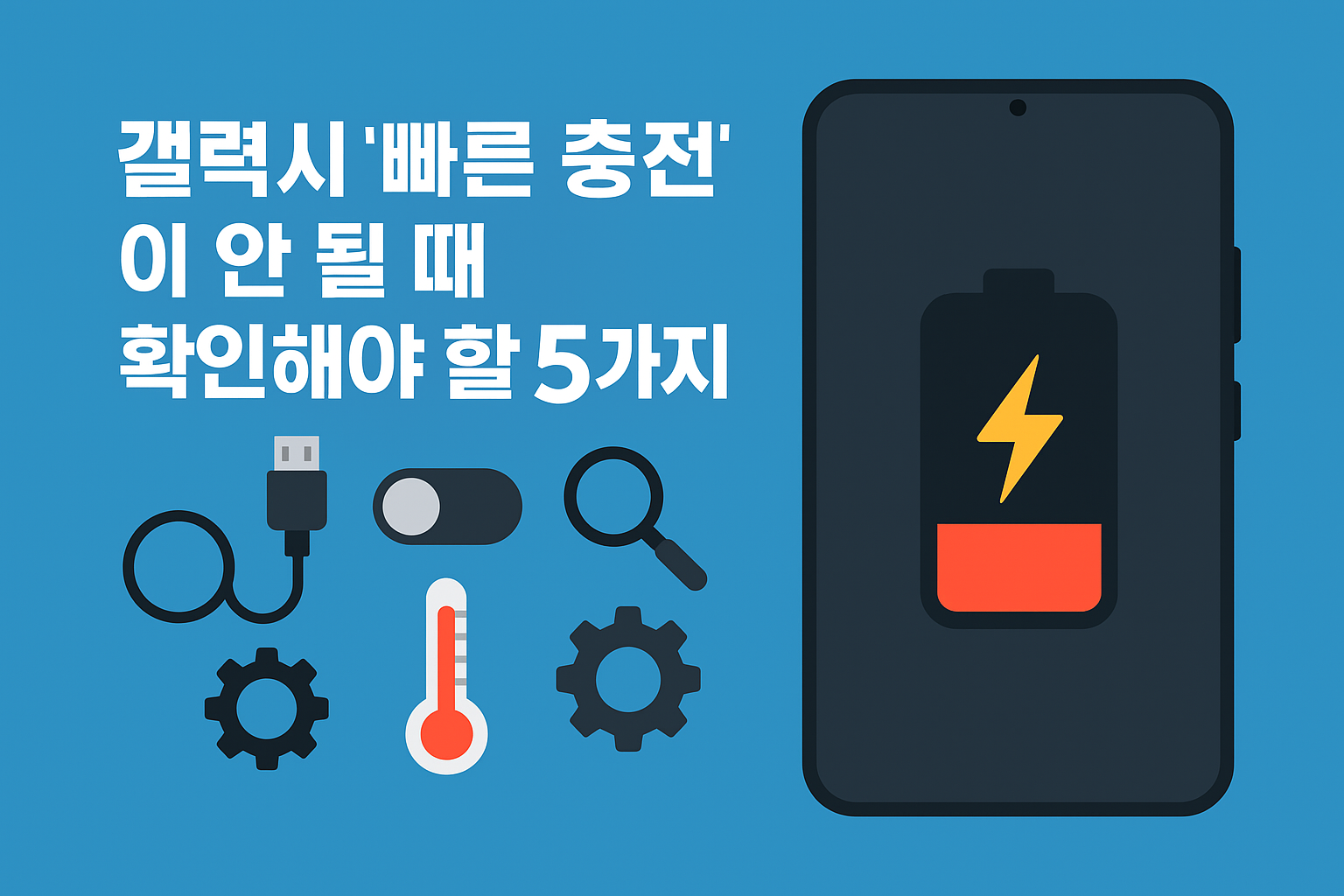 안녕하세요 오늘도 휴잉의 블로그를 찾아주신 여러분 감사드려요. 오늘 제가 포스팅할 내용은 "갤럭시 빠른 충전이 안될 때 확인해봐야 할 5가지"에 대해 포스팅해보려고 해요. 갤럭시 스마트폰을 사용하다 보면 "빠른 충전"기능이 갑자기 작동하지 않아 당황할 때가 있어요. 평소화 동일한 충전기와 케이블을 사용하는데도 충전 속도가 느리게 느껴진다면 몇 가지 원인을 점검해 보는 것이 좋아요. 그럴 때 확인해봐야 할 갤럭시 빠른 충전이 안될 때 확인해 볼 수 있는 5가지 방법을 여러분들께 소개해드릴게요.