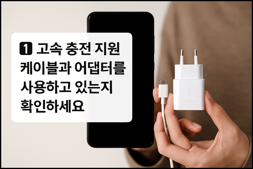 1. 고속 충전 지원 케이블과 어댑터를 사용하고 있는지 확인하세요.