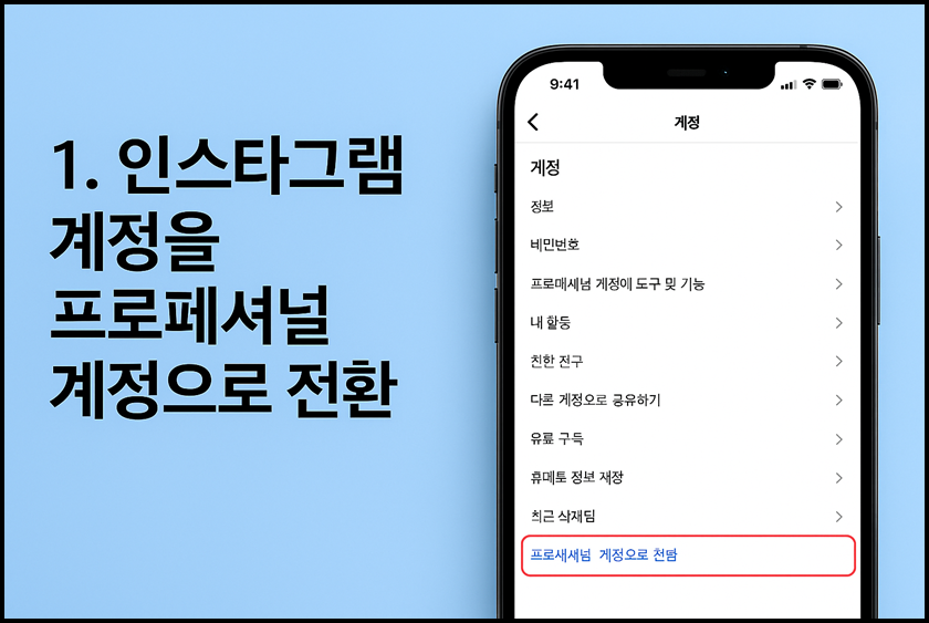 1. 인스타그램 계정을 프로페셔널 계정으로 전환하기