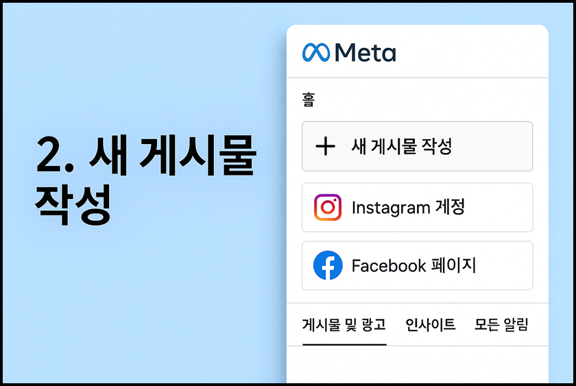Meta Business Suite는 페이스북 페이지를 기반으로 작동하는 시스템이기 때문에, 인스타그램 계정을 반드시 하나의 페이스북 페이지와 연결해야 해요. 이는 인스타그램 앱 내에서 "프로필 편집" -> "페이지"항목을 통해 간단히 설정할 수 있는데, 이미 만들어진 페이지를 연결하거나 새로 페이지를 생성하는 방법도 있어요. 이 과정을 완료하면 Meta Business Suite에서 두 계정이 연동되어 예약 기능을 사용할 준비가 끝이 나요.예약 게시물 등록 방법(Meta Business Suite 기준)