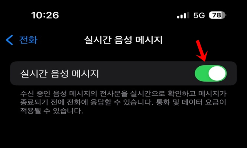 위 사진처럼 "실시간 음성 메시지"기능이 활성화되어 있을 텐데, 클릭해서 비활성화해주시면 아이폰에서 벨소리 3번 울리고 음성사서함으로 넘어가는 부분은 해결이 가능해요. 간단하죠?
