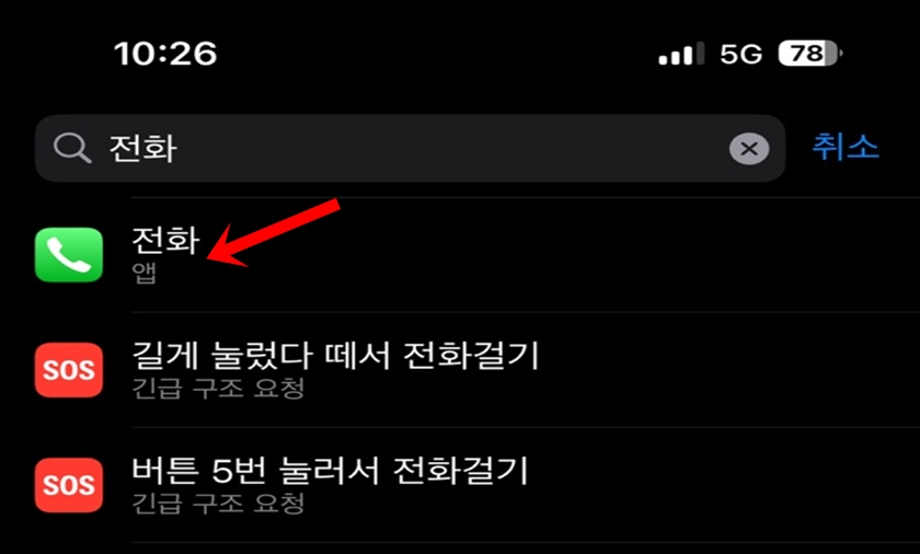 진입 후 "전화"앱을 클릭하고 검색에서 앱을 실행해 주세요.