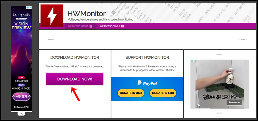 HWMonitor를 사용하기 위해서는 공식 사이트에서 프로그램을 다운로드 할 수 있어요. 우선 위 링크를 클릭해서 홈페이지에 접속을 해주세요.