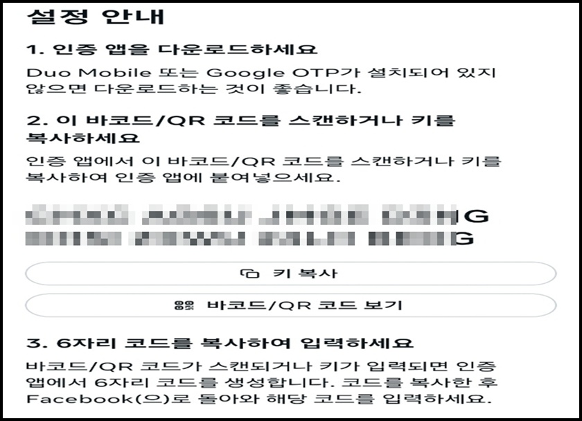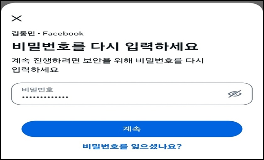 6자리 코드를 다시 입력하시고 마지막으로 페이스북 비밀번호를 입력하시면 2단계 인증이 완료돼요. 간단하죠?