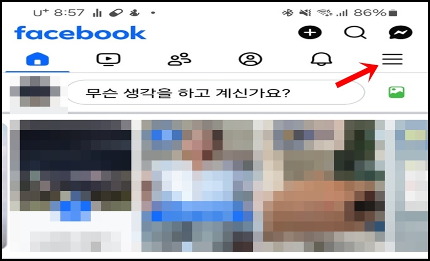 모바일기준으로 설명을 드릴게요. 먼저 여러분의 스마트폰에서 페이스북을 실행 후 오른쪽 상단의 "메뉴"버튼을 클릭해 주세요.